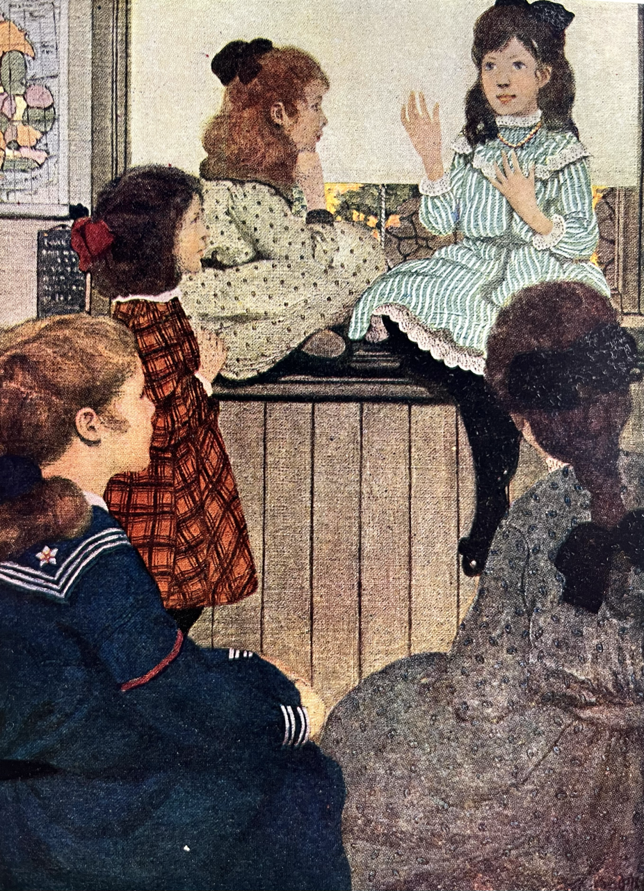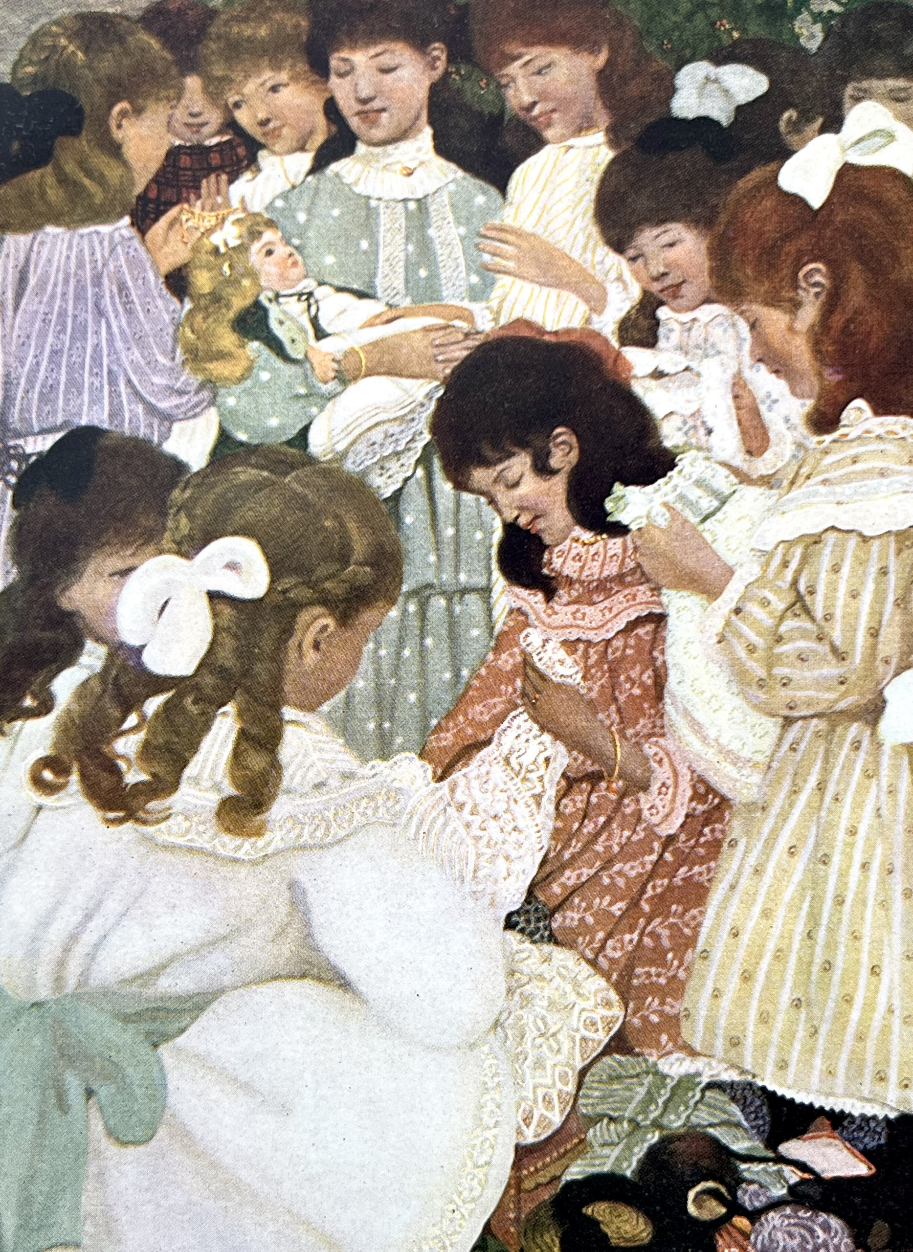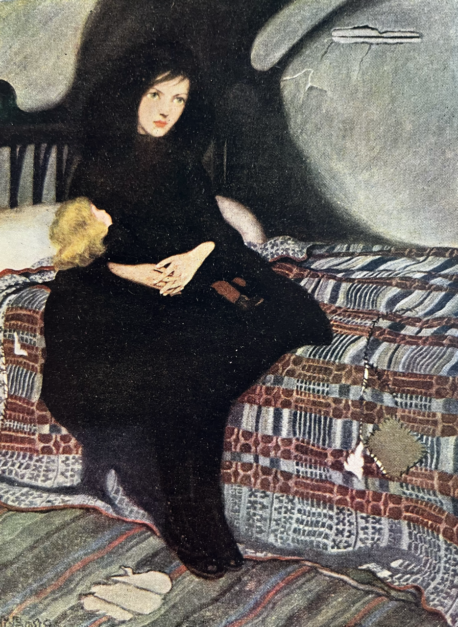 Franklin Betts was one of the celebrated Brandywine group of artist/illustrators, who studied under Howard Pyle at Drexel Institute, and became known and lauded for the impactful graphic design elements of her illustrations. She flourished in the Golden Age of children’s book artistry working for magazines and children’s book publishers. Her highlight titles are this one, “The Complete Mother Goose”, and “Fairy Tales from Grimm”.