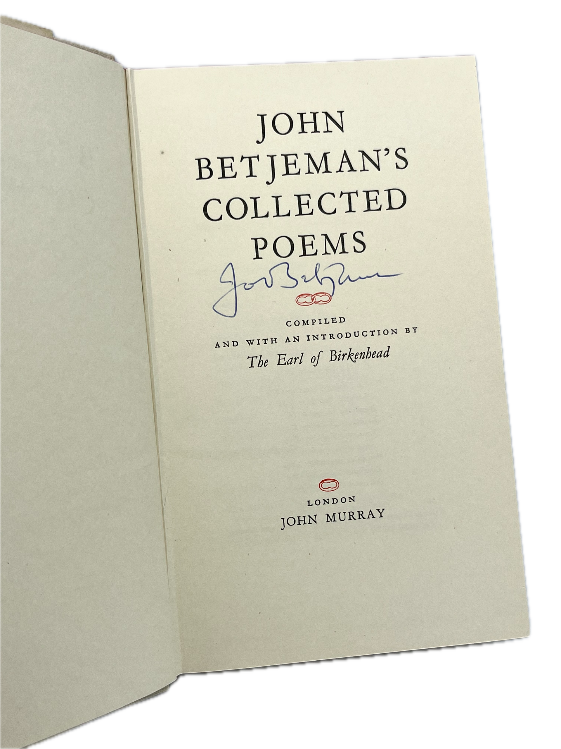 9th edition, first published in 1958, including poems written in the interim. Signed in ink by John Betjeman to the title-page.