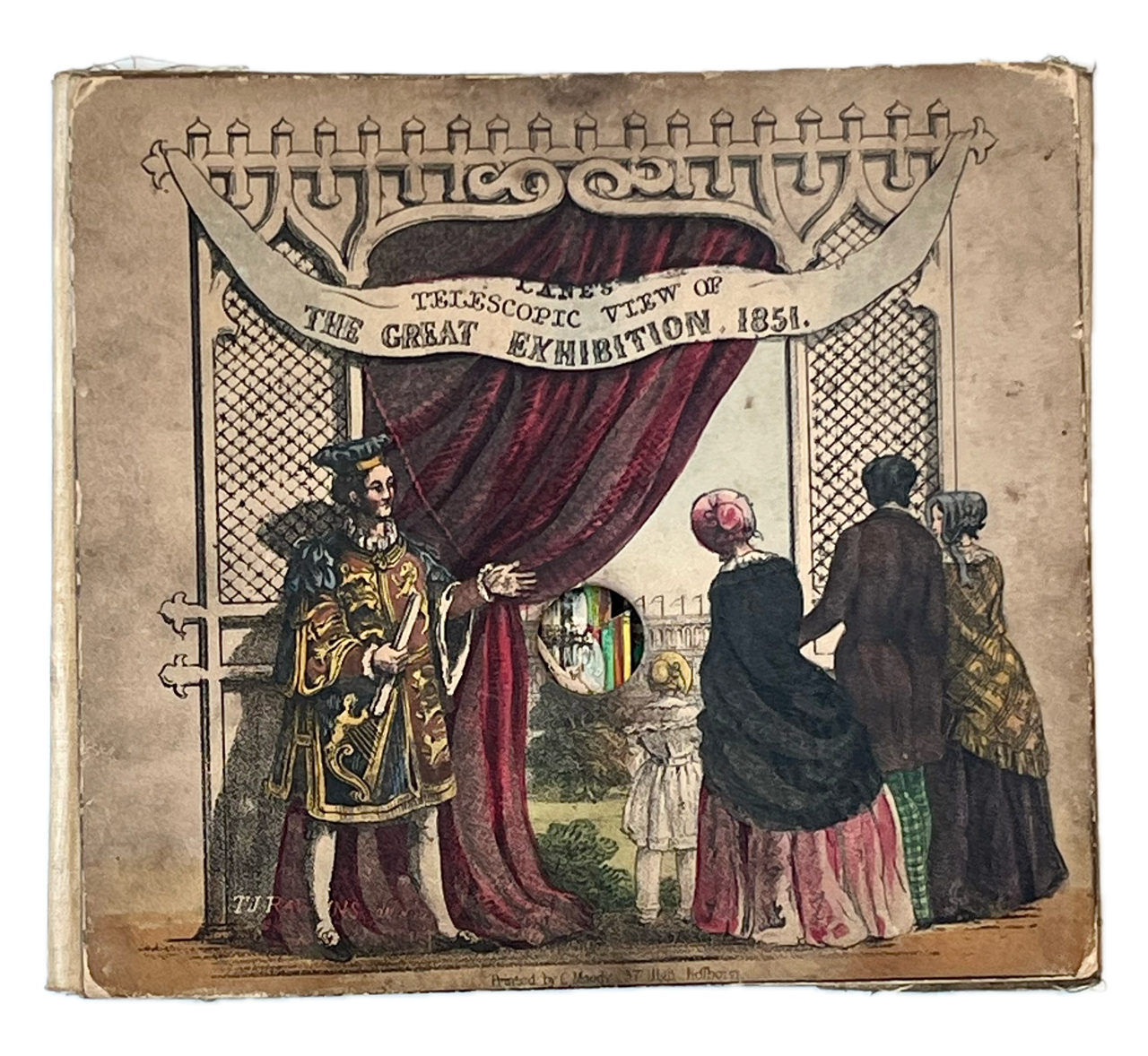 Landscape 8vo.(circa 18 x 16cm); publisher’s buff boards, pictorially engraved with original handcolouring to upper cover, extending to reveal a 10-sectional lithographed peepshow with circular viewing aperture with original neat handcolouring throughout, hinged with the original undyed calico cloth bellows, and extending to a total depth of 28 inches; externally dust-soiled and somewhat darkened, with small marking to lower cover, the accordion folds remarkably unrestored and without splitting or other wear, but with spotting; internally very good, bright and sound; without the original protective slipcase, as is often the case.