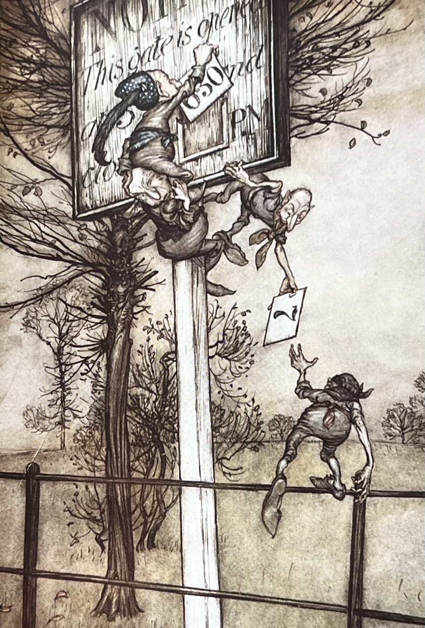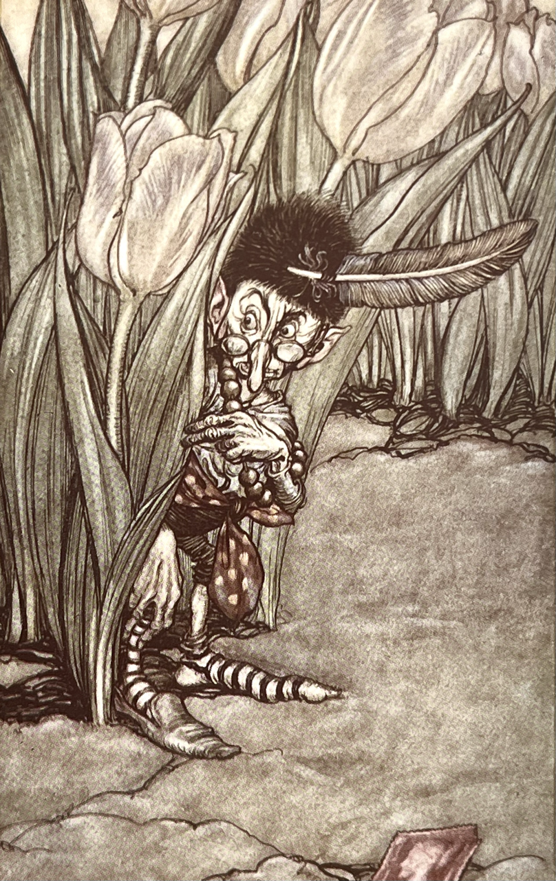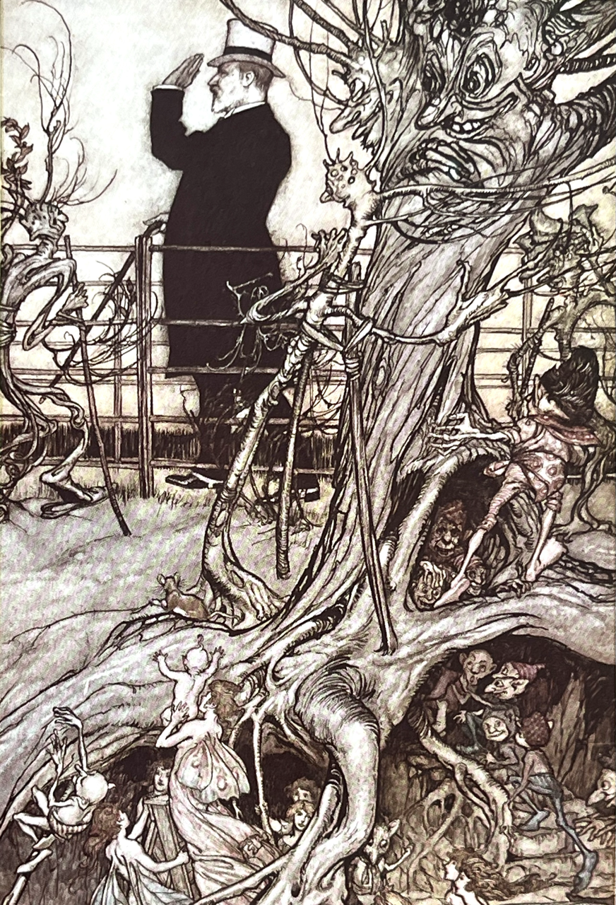 Small square 4to.; publisher’s red cloth elaborately and pictorially gilt with gilt vignette to upper board, decorations and panelling in blind, map endpapers; illustrated with 16 fine and pretty mounted coloured plates by Arthur Rackham; a bright, clean copy with slight fading and marking to spine and a minor dint to fore-edge of upper cover; all plates in fine state.
