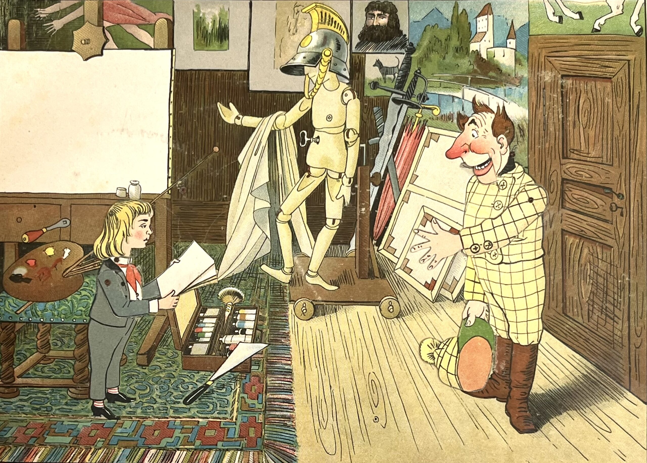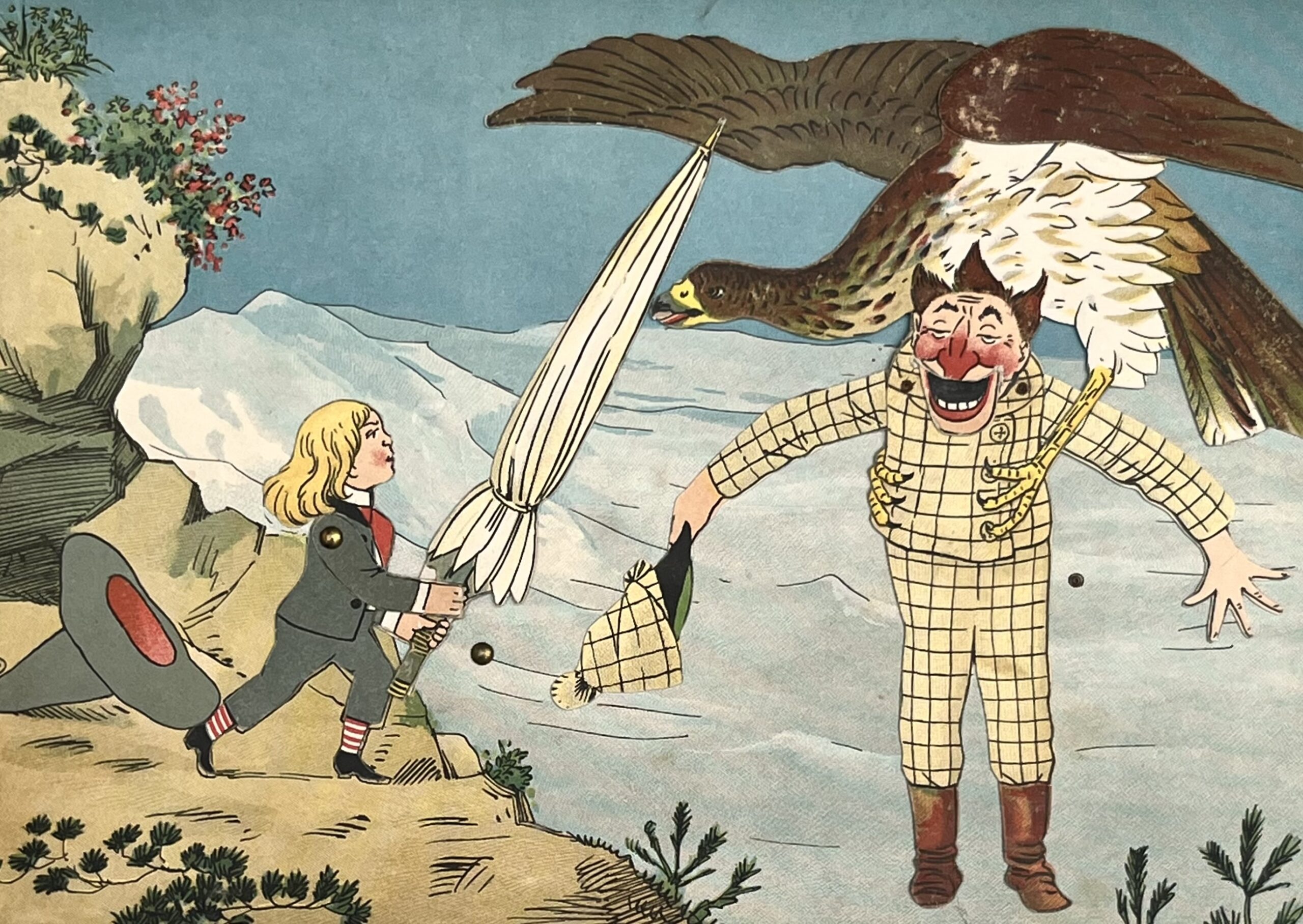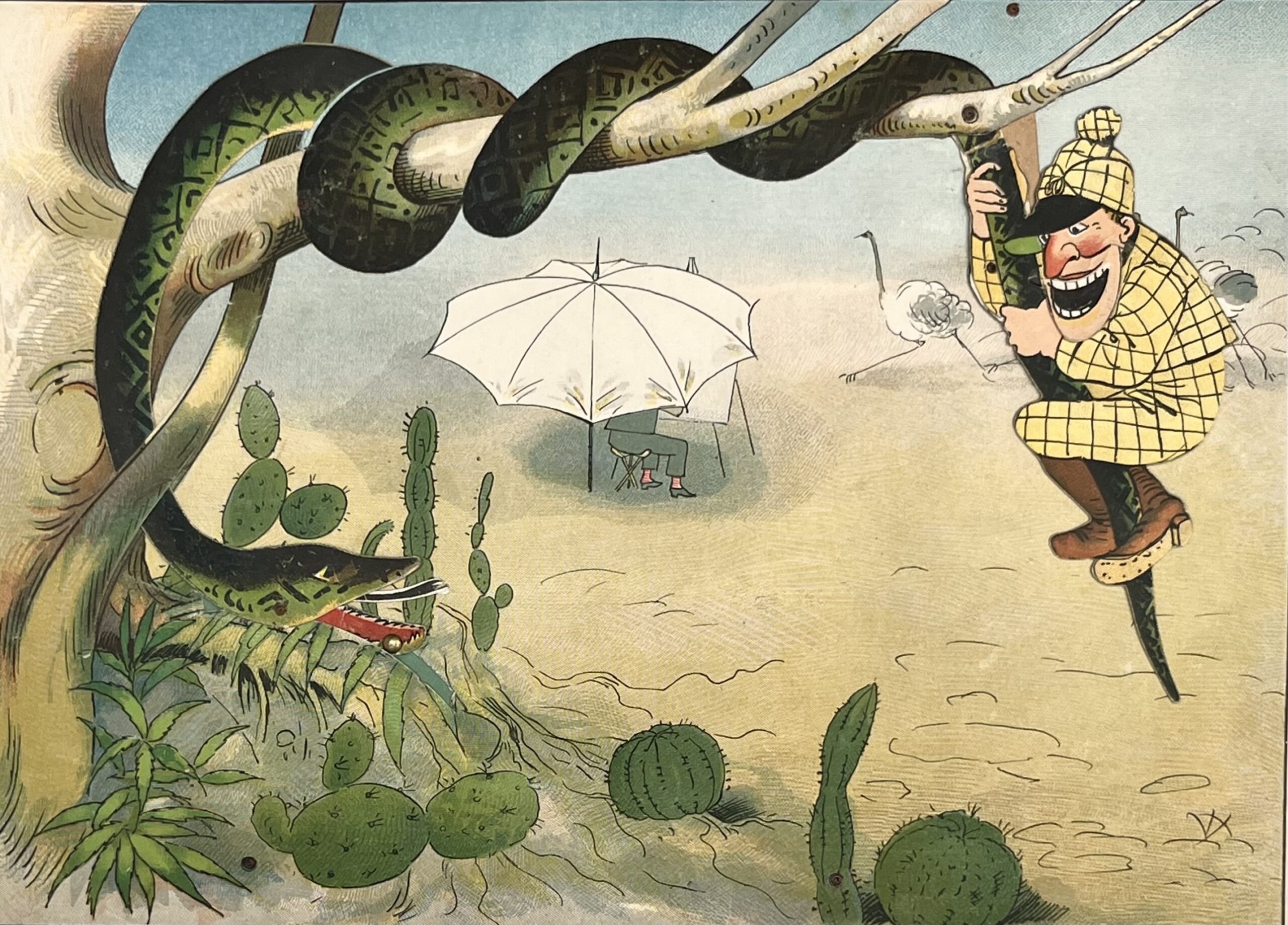 The aristocratic Little Lord Thumb, who fancies himself an artist, and his loyal servant Damian, have several memorable encounters in the wilds of Africa where they fight with an Ourang-Outang, are interrupted by a tiger, come across a sleeping crocodile and a coiled serpent, baffle a brown bear with an umbrella. resist kidnapping by a giant eagle, and return homeward in a unsteady boat accompanied by their animal retinue.