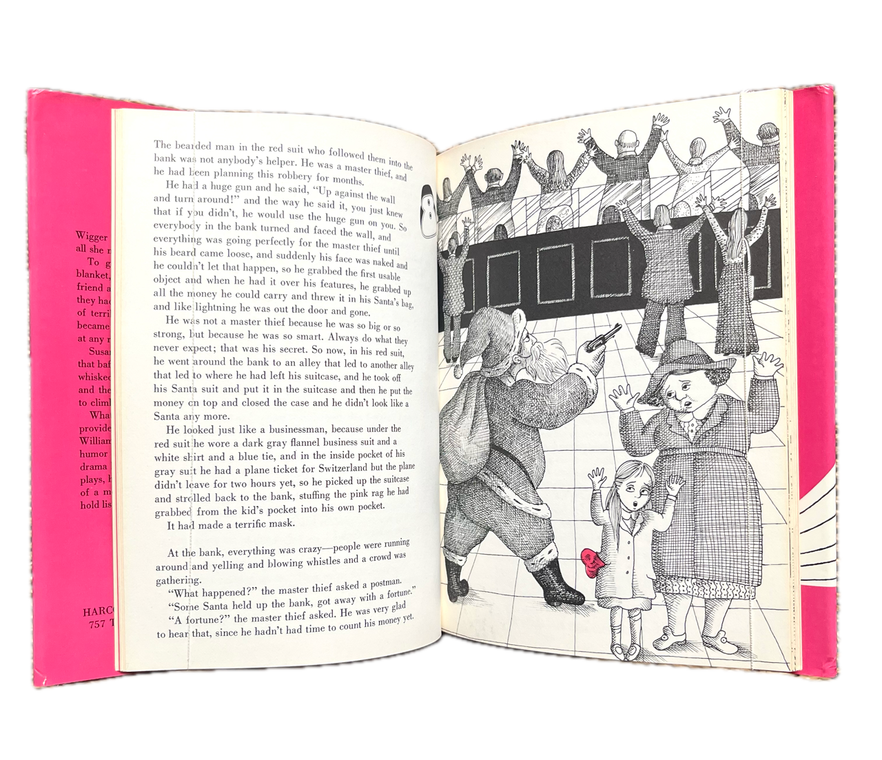 The story was written for, and dedicated to, the author’s daughter Susanna and her favourite pink blanket, which was the inspiration for the tale. It was named Book of the Year by the Child Study Association. It is an oddly dark and soulful tale centring on a character named after his daughter, who loses her parents in a tragic accident. Orphaned, she ends up rather abandoned in various homes but retains her loyal “Wigger”, a blanket with human feelings. This companion is lost in a chaotic bank robbery and the story develops around the child’s search for her favourite friend.